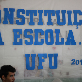 Vou encerrar desenhando, né. Que é só isso que eu sei fazer. E umas fotos do Constituição na Escola, que levava estampado na camisa, olha só, também uma frase de Rubem Alves.